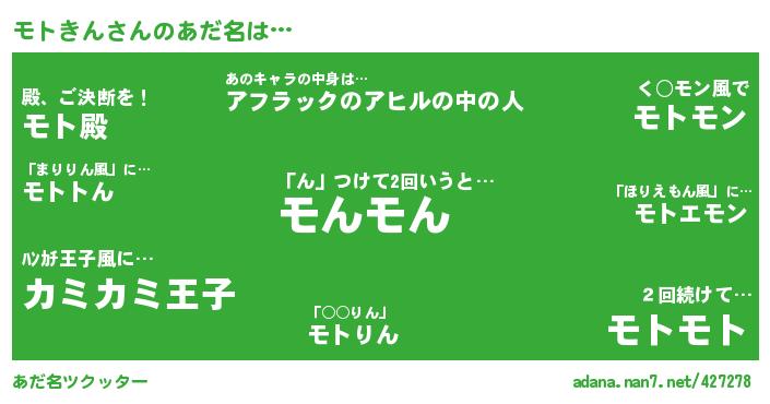 | ポケモン風あだ名 | 『モトキング』『モトゴンZ』『モートイ』『モトキダネ』 |