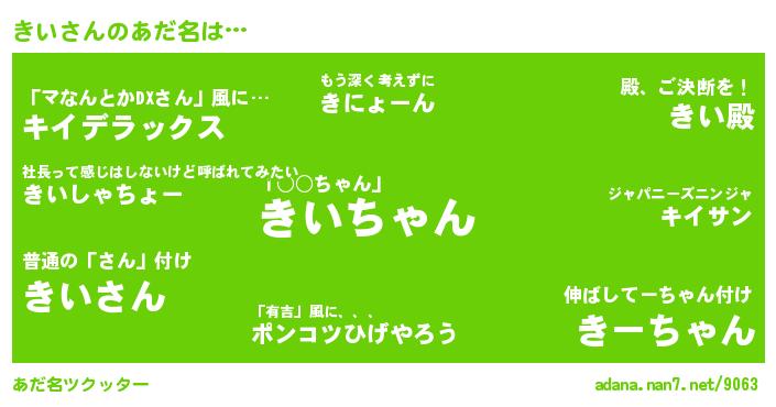 | ポケモン風あだ名 | 『キイダネ』『キイキング』『ヒキイ』『キイチュウ』 |