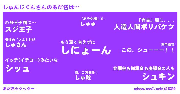 | ピコ太郎風あだ名 | 『ピコイ郎』『イコ六郎』『イク四郎』『イイ太郎』『ピイ次郎』 |