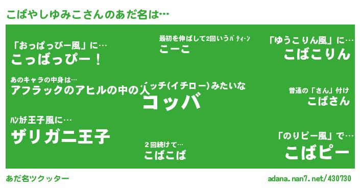 たとえば“こばやしゆみこ”さんがあだ名になると・・・