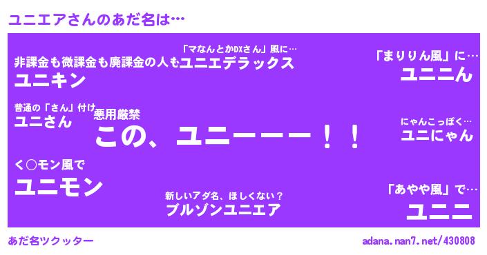 たとえば“ユニエア”さんがあだ名になると・・・