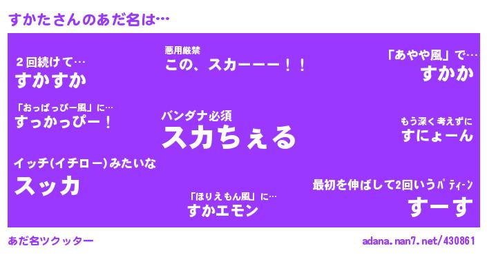 | 意味不明あだ名 | 『ペロリンすかた』『とにかく怪しいすかた』『永久保存すかた』 |