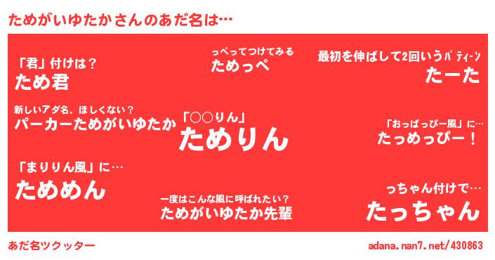 | 欧米人風あだ名 | 『アンジェラ・すかた』『マイケルすかた』『ウサインすかた』 |