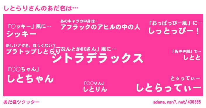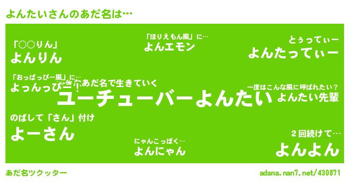 | 2回繰り返すあだ名 | 『ぽつぽつ』『ゆうゆう』『ちんちん』『もきゅもきゅ』 |