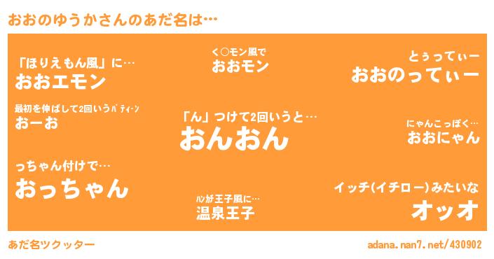 たとえば“おおのゆうか”さんがあだ名になると・・・