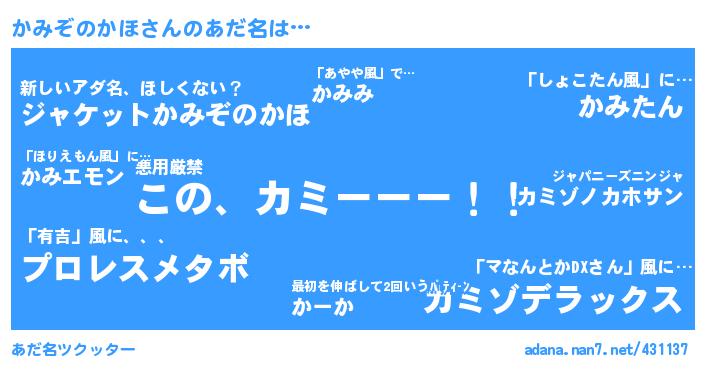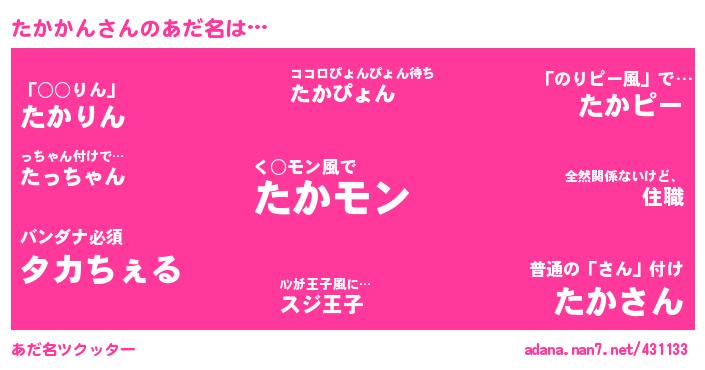 | ピコ太郎風あだ名 | 『クコ二郎』『クク太郎』『ピコク郎』『ピク太郎』『クマ次郎』 |